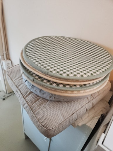 쿠션 방석 챙겨서 자리에 앉았어요.
