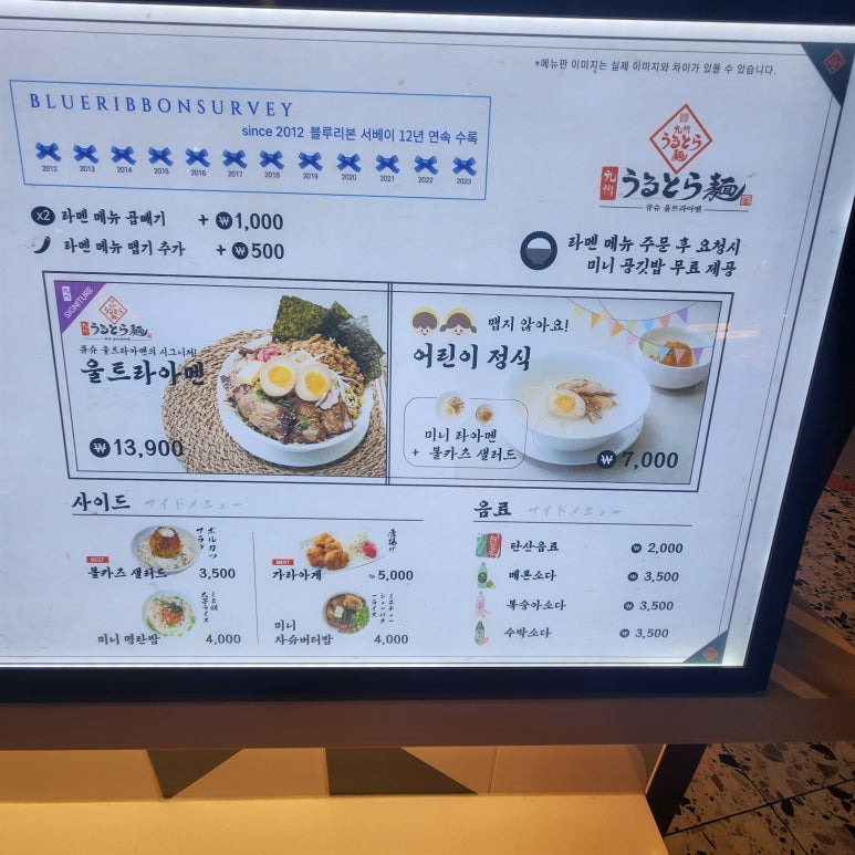 스타필드 안성점에 쇼핑 갔다가 식사할 곳을 찾다가 큐슈 울트라아멘에 다녀왔습니다.