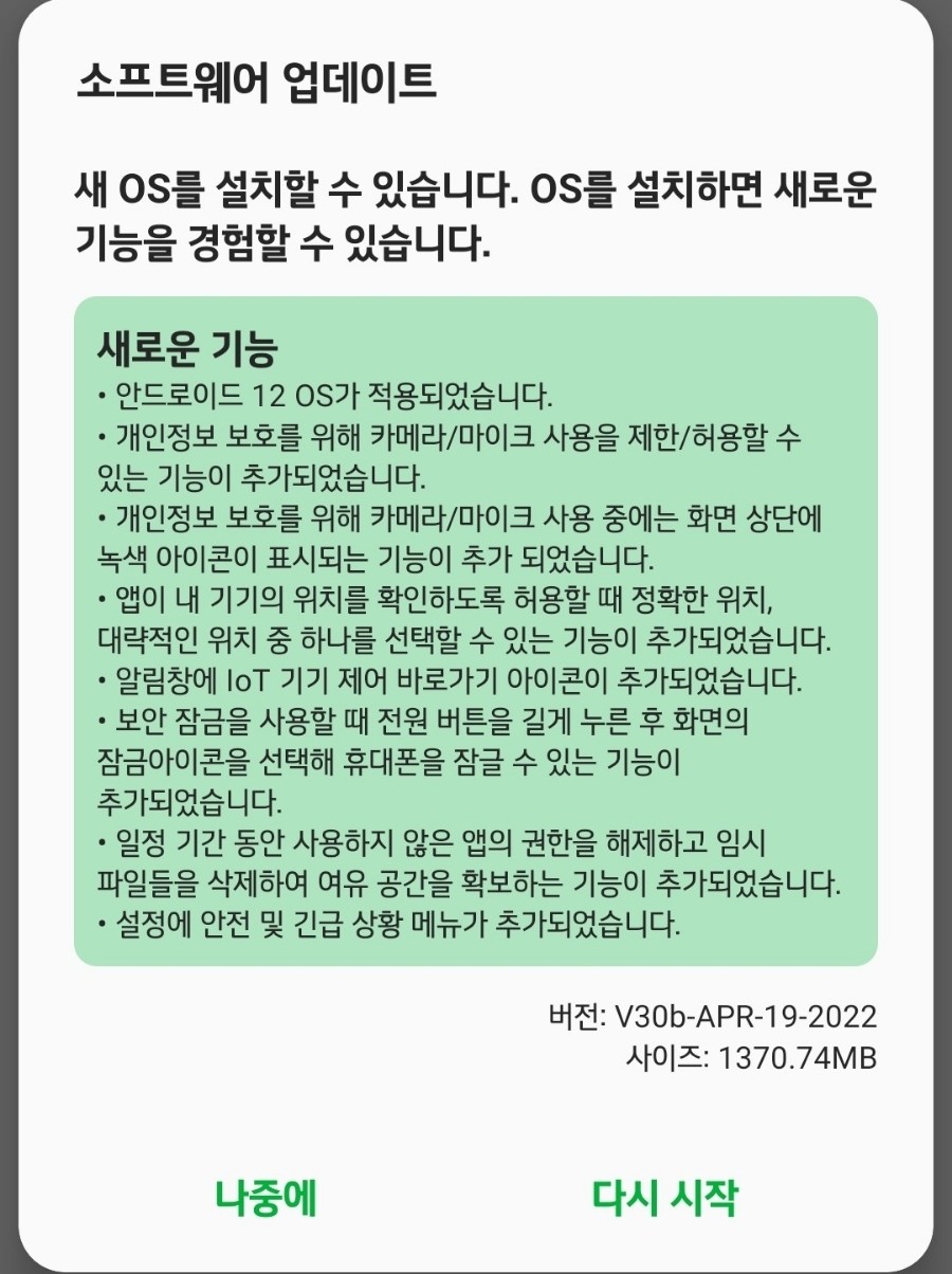 안드로이드 12로 소프트웨어 업데이트가 있더라구요.