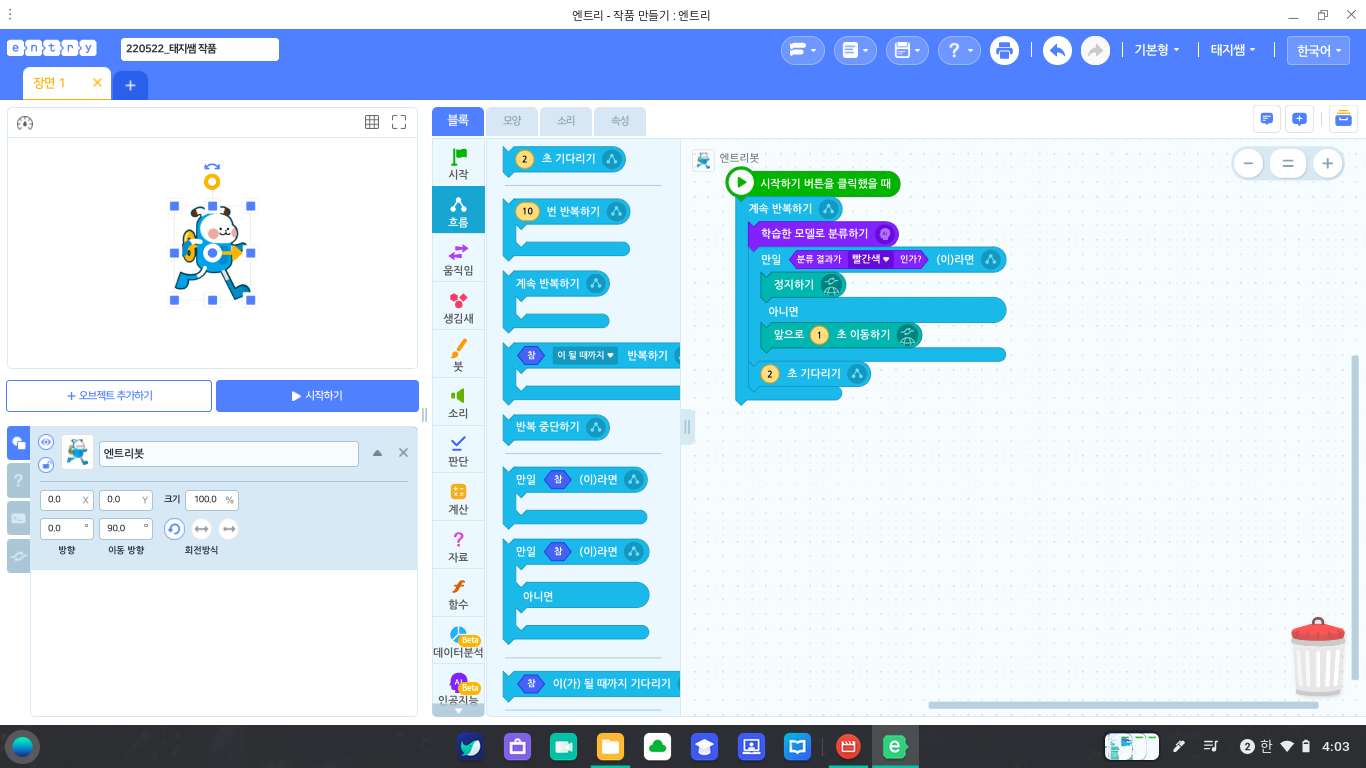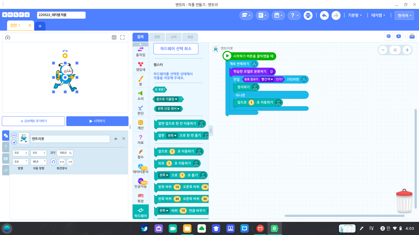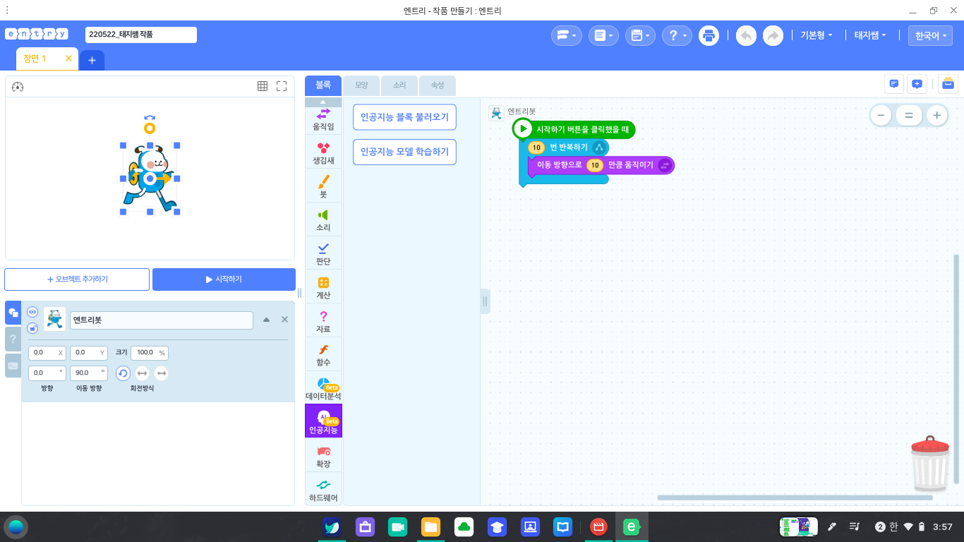 보너스로 엔트리의 인공지능 블록을 사용해서
