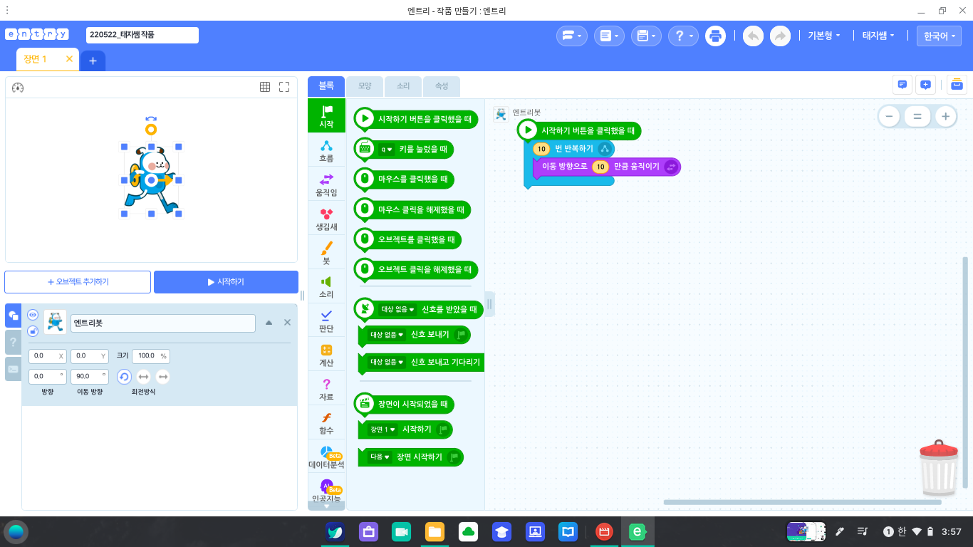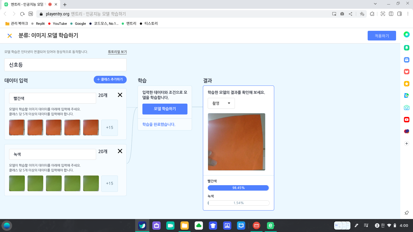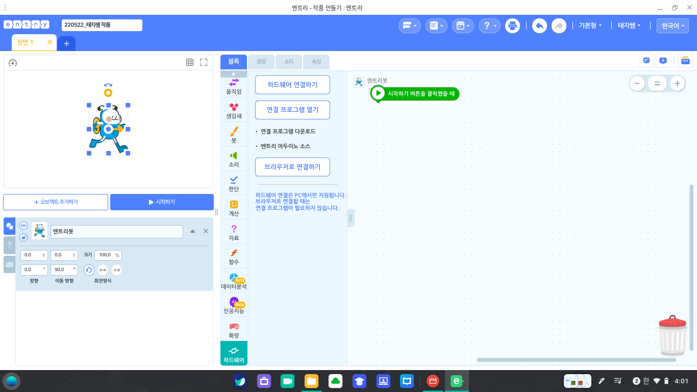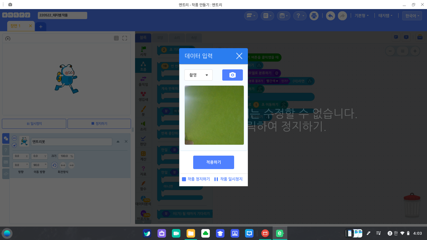 보너스로 엔트리의 인공지능 블록을 사용해서