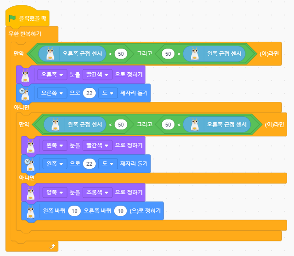 3번의 경우는 왼쪽 오른쪽 근접센서 둘 다