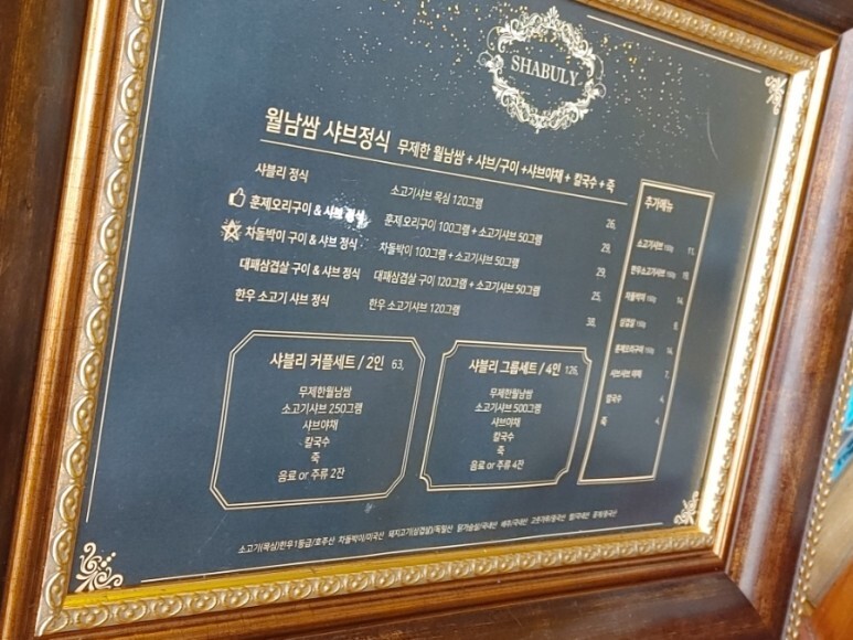 메뉴판이 무슨 고급 액자같아요.