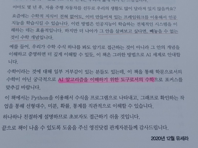 이 책은 AI 알고리즘을 이해하기 위한 책이에요.
