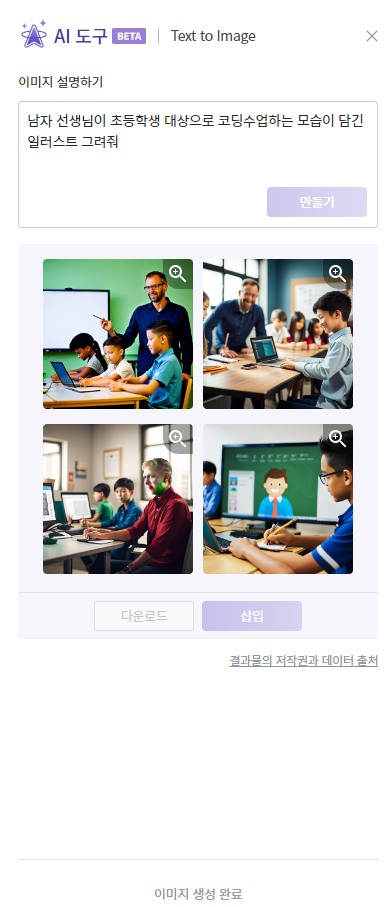 바로 AI가 생성한 문장이 작업하던 문서에 삽입됩니다.