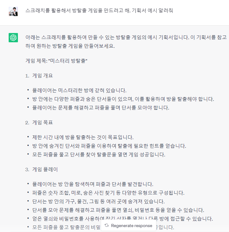 엔트리/스크래치로 방탈출게임 만들기 기획서 with chatGPT