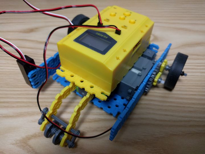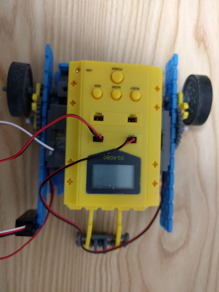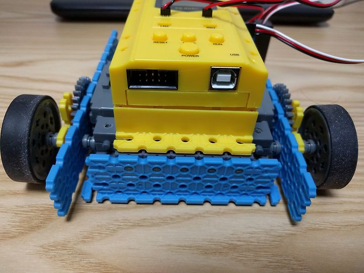 EQ로봇 첫번째 로봇인 레이싱카입니다. 1단계에 쓰이던 메인보드가 보이지 않고 업그레이드된 메인보드가 눈에 띕니다.