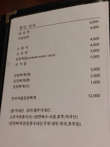 고깃집에서 제공되는 된장찌개는