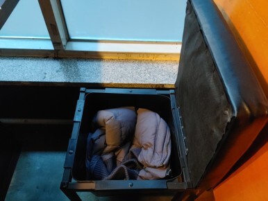 의자 밑에 두꺼운 겨울 패딩도 쏙 들어가구요.