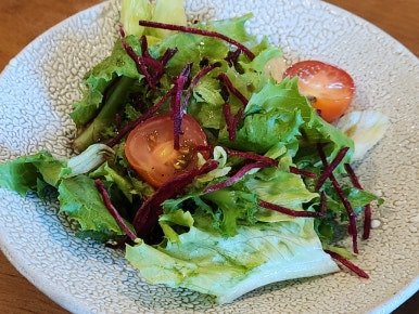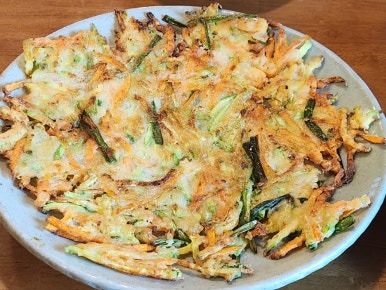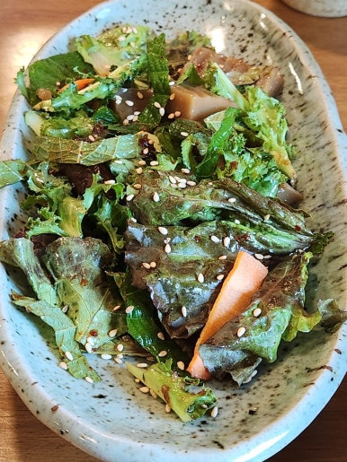 야채전, 샐러드, 묵이 먼저 나왔어요.