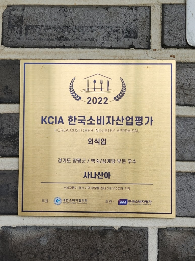 외식업 백숙/삼계탕 부분 우수상을 받았어요.