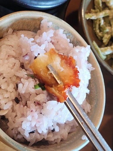 황태구이 살 발라서 영양찰밥과 함께 먹으면
